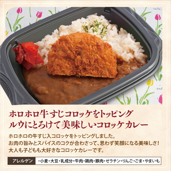 米(国産)、玉ねぎ、じゃがいも、鶏肉、もち麦、福神漬け(だいこん、きゅうり、その他)、植物油脂、小麦粉、砂糖、パン粉、しょうゆ、ポテトフレーク、牛肉、豚ハツ、大豆たん白、でん粉、牛脂、食塩、こしょう加工品、脱脂大豆粉末、ぶどう糖、ゼラチン、脱脂粉乳、デキストリン、カレー粉、パセリ、ポークパウダー、チキンブイヨンパウダー、ビーフブイヨンパウダー、野菜ブイヨンパウダー、白菜エキスパウダー、ローストキャベツパウダー、香辛料、野菜ペースト(大豆油、なたね油、その他)、ミルポワパウダー(デキストリン、砂糖、その他)、酵母エキス調味料、りんごペースト、加工はちみつ、果糖、酵母粉末、粉末味噌/ 調味料(アミノ酸等)、加工デンプン、酸味料、香料、乳化剤、増粘剤(キサンタンガム)、酸化防止剤(ビタミンC)、甘味料(ソルビトール、ステビア)、保存料(ソルビン酸K)、安定剤(CMC)、着色料(カラメル色素、黄4、赤102)、香料