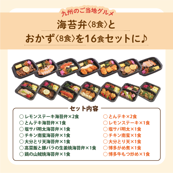 【UMACA冷凍】〈海苔弁8食・おかず8食〉16食セット